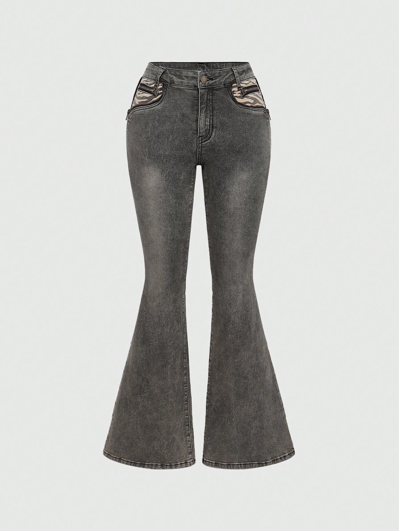 ROMWE Avant Women's Vintage Y2K Baddie Patchwork Zebra Print Cross Design Super Low Waist Skinny Jeans
