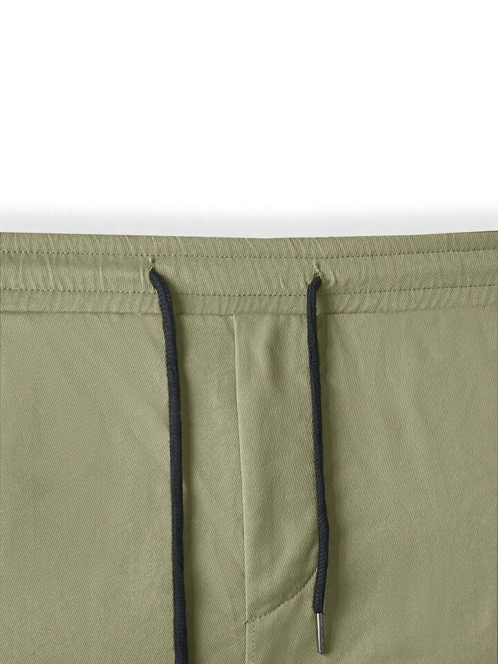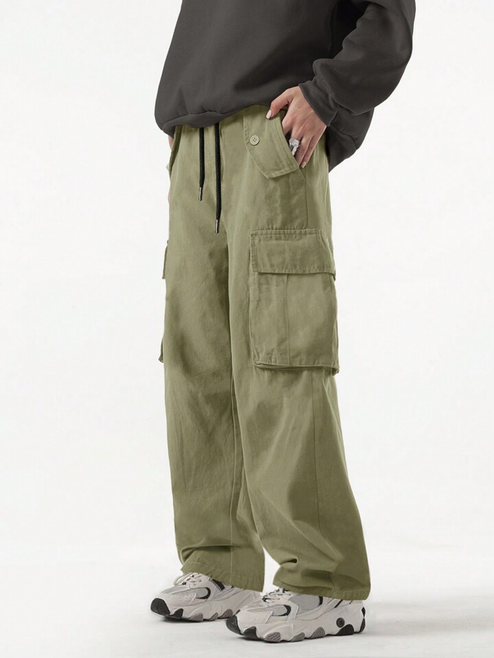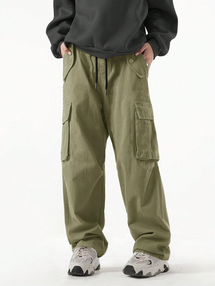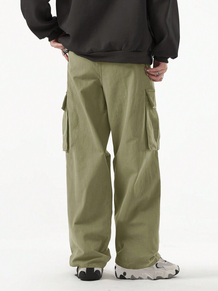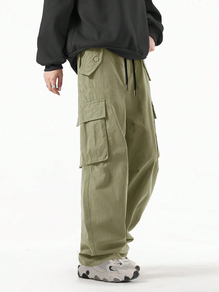 ROMWE UNISEX Men's Casual Solid Color Drawstring Waist Straight Cargo Trousers