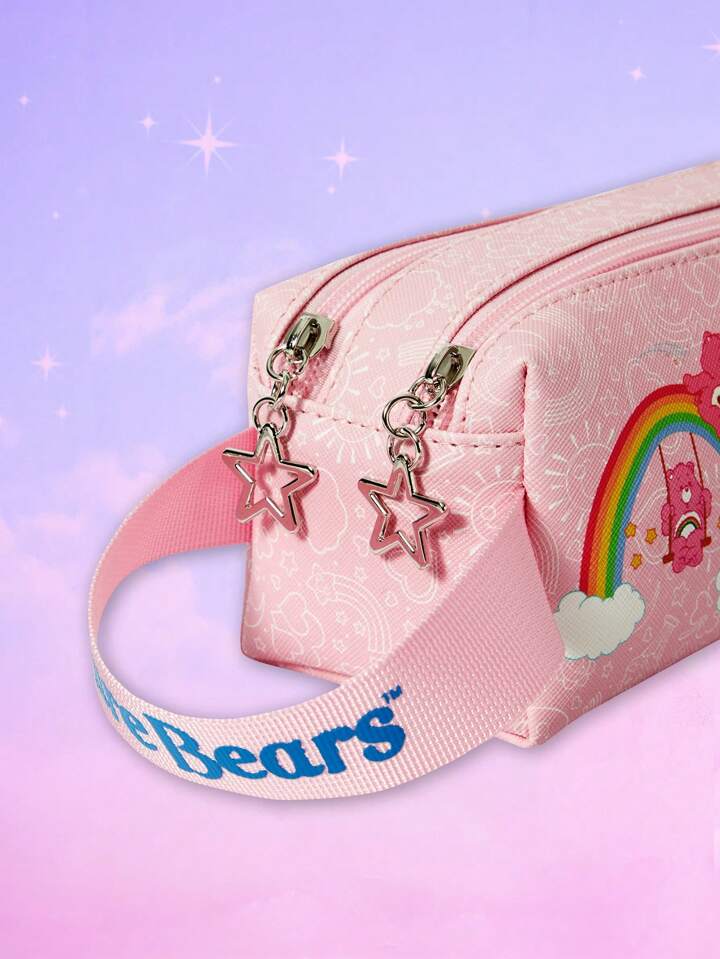 ROMWE X Care Bears Cartoon Bear And Heart Print Portable Handheld Pencil Case & Cosmetic Bag