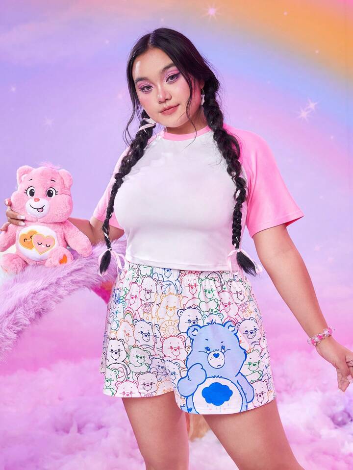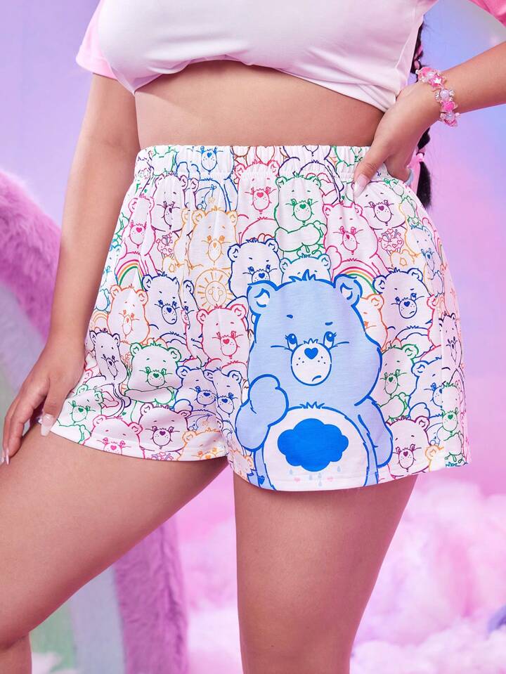 ROMWE X Care Bears Plus Cartoon Graphic Shorts
