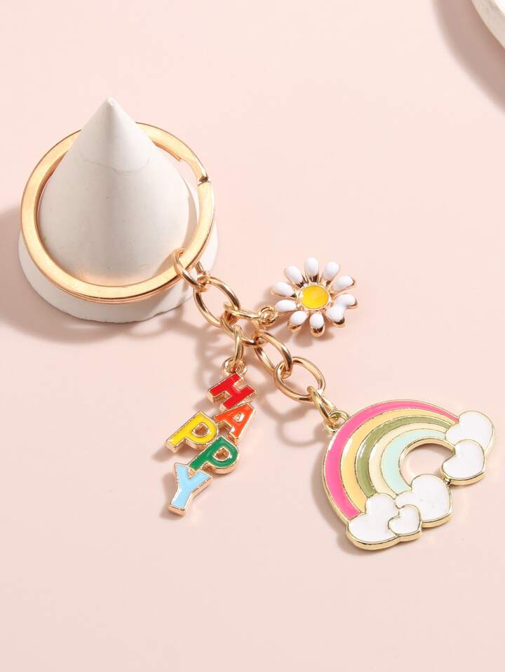 Rainbow & Flower Charm Keychain