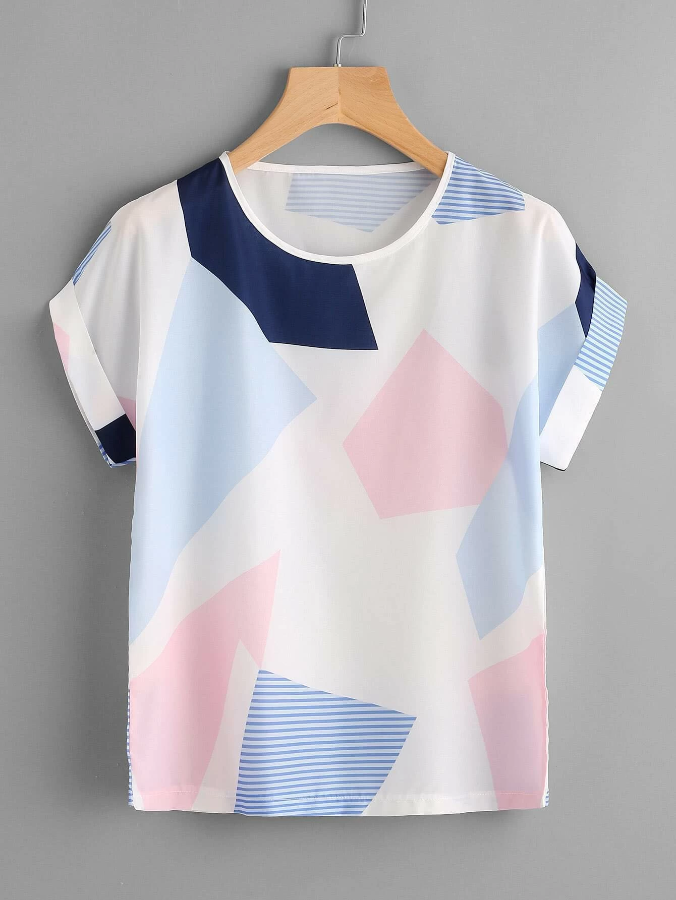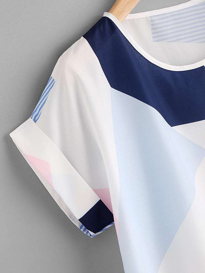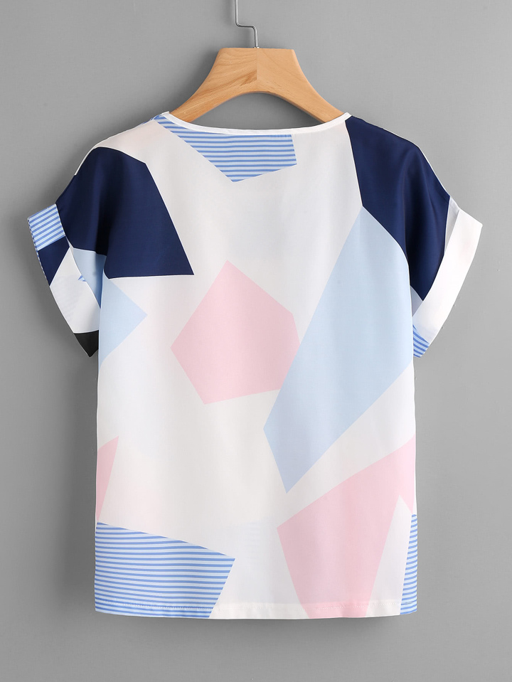 Random Geo Print Cuffed T-shirt