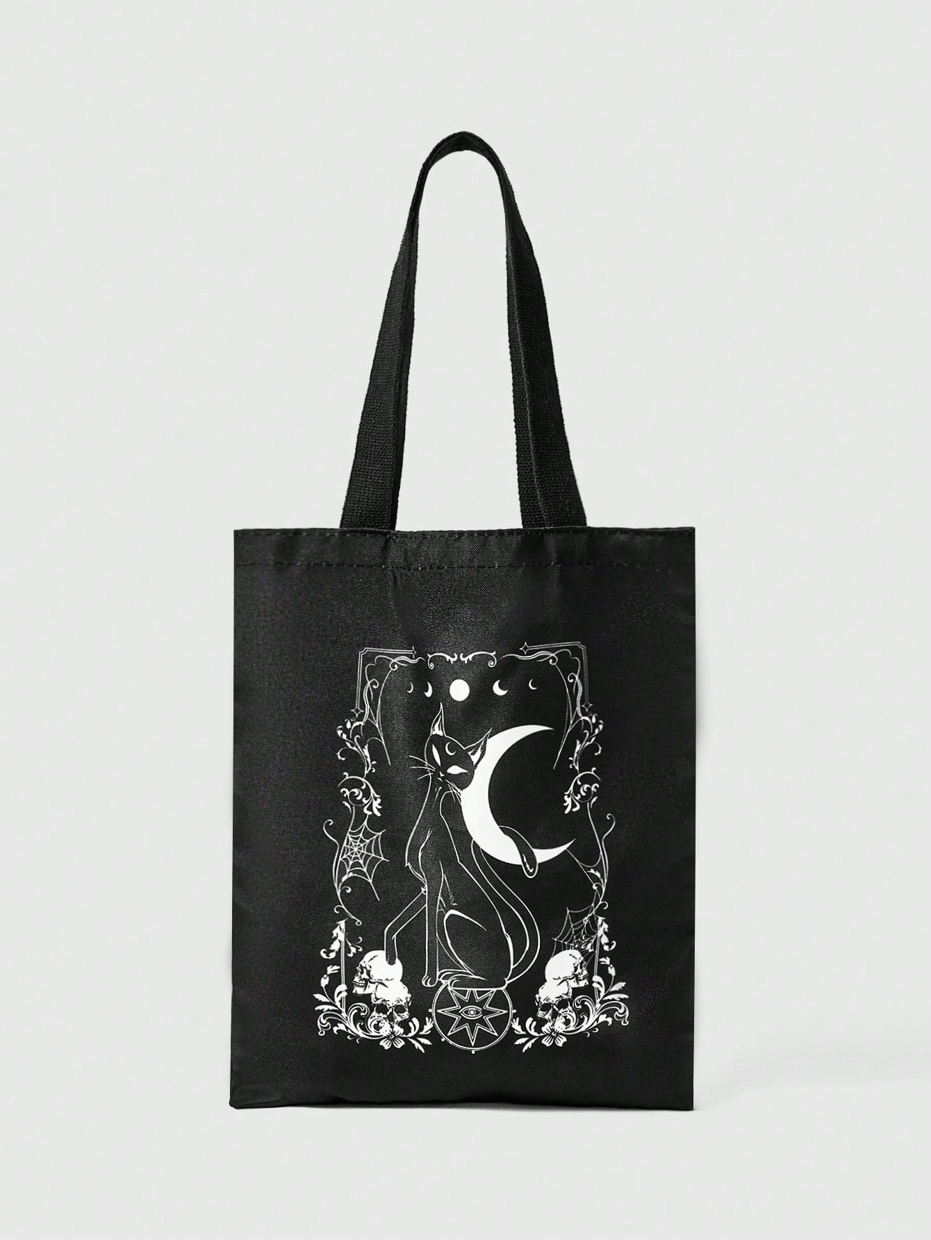 Grunge Punk Reusable Canvas Tote Bag With Allover Print Eye/Moon/Star Pattern, Shoulder Bag Design Suitable For Shopping
