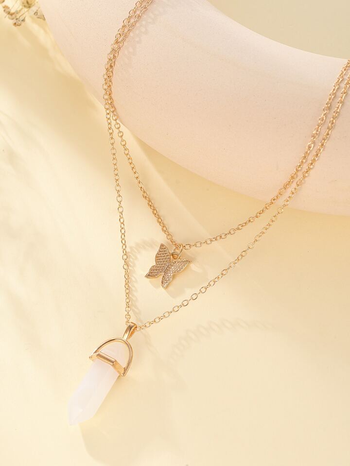 Rhinestone Butterfly & Geometric Charm Layered Necklace