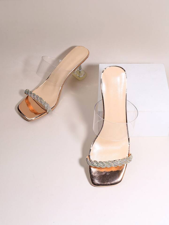 Rhinestone Decor Clear Pyramid Heeled Mule Sandals