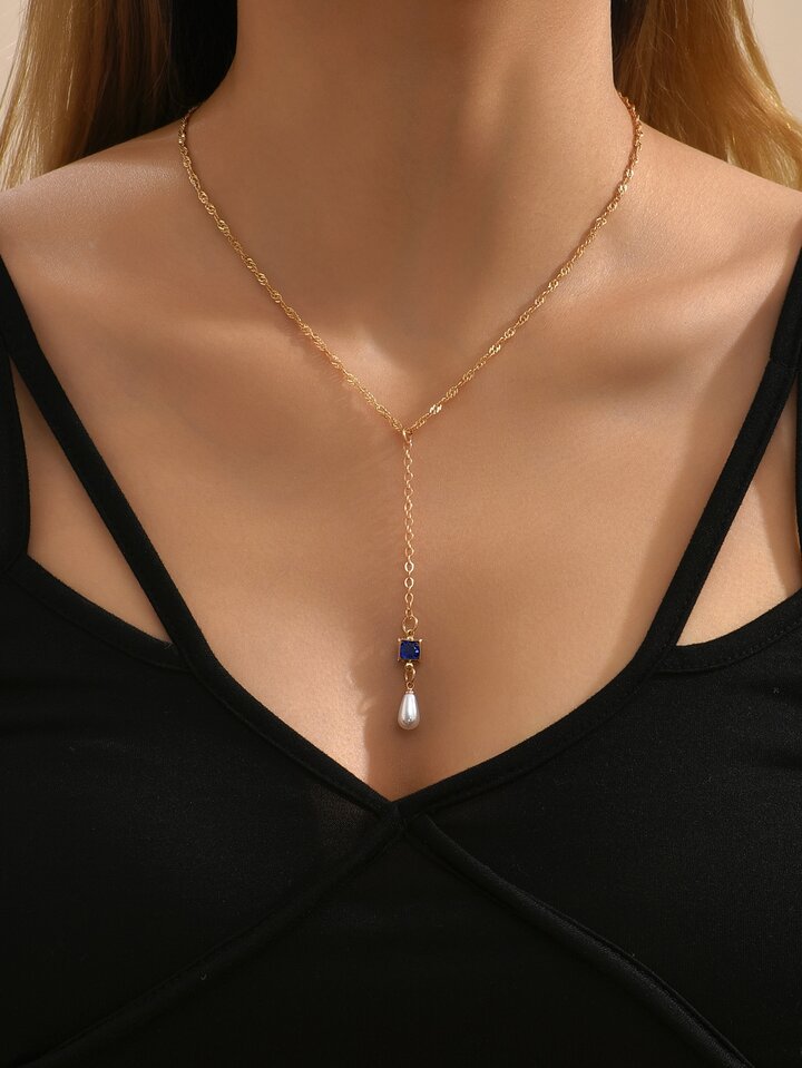 Rhinestone Decor Y Lariat Necklace
