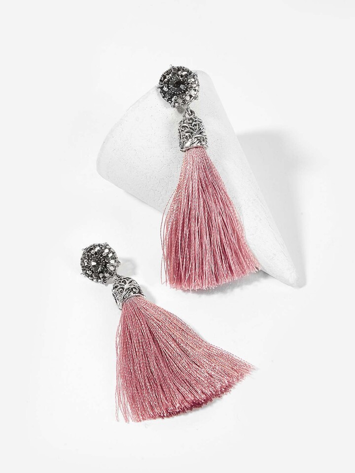 Rhinestone Detail Tassel Drop Earrings 1pair