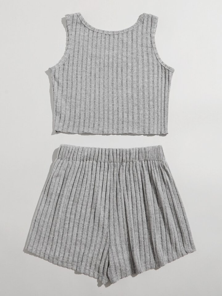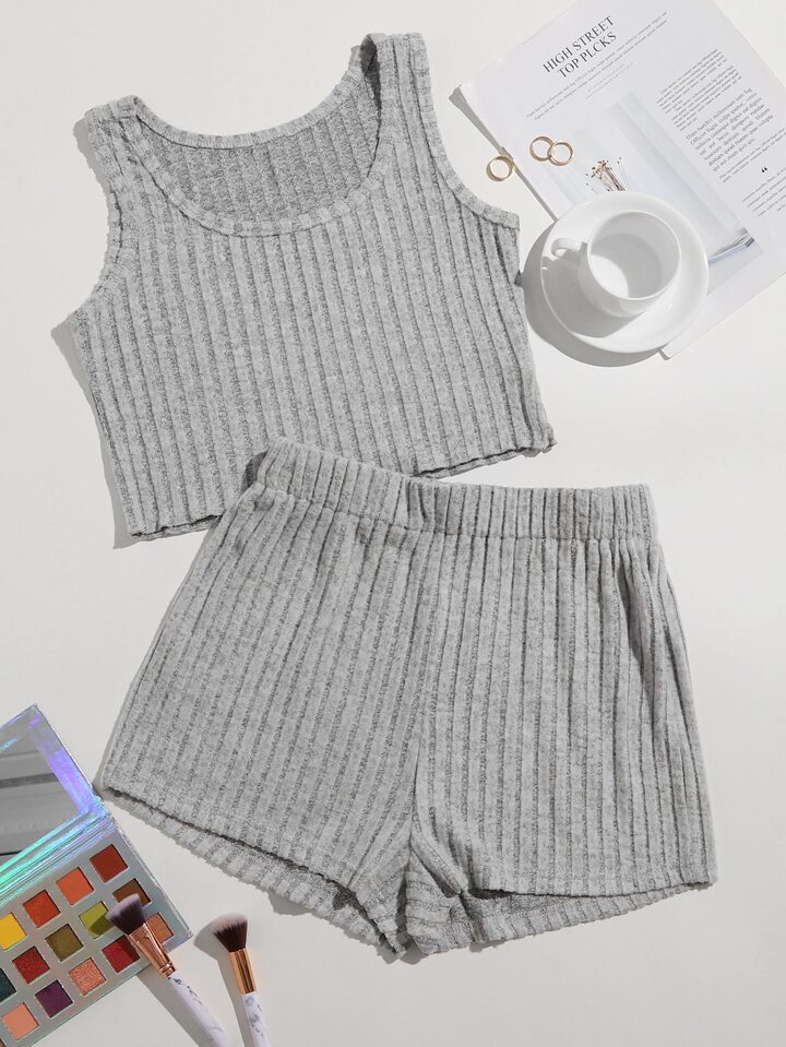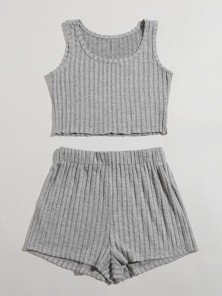 Ribbed Crop Tank Top & Shorts PJ Set