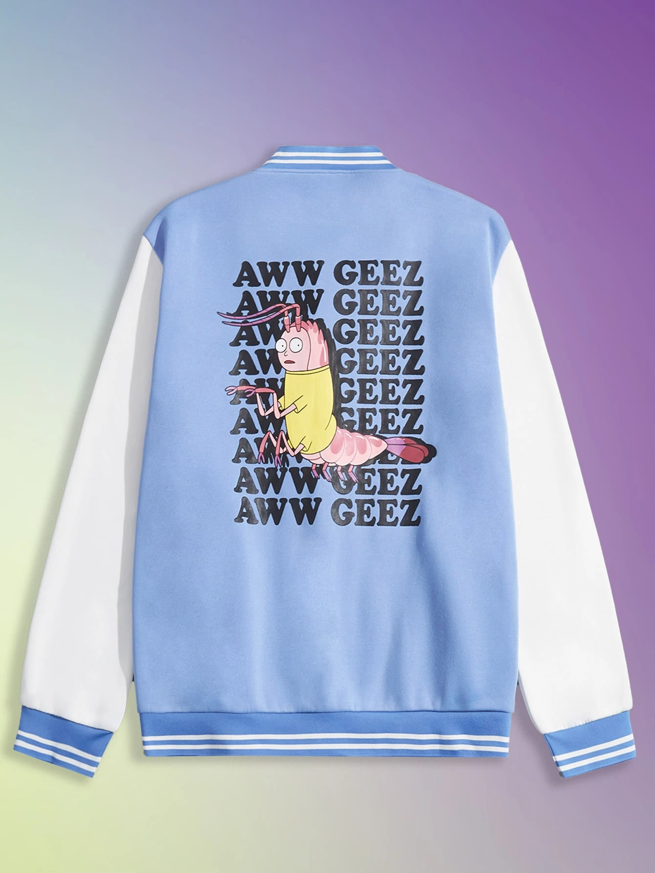 Rick and Morty | ROMWE Guys Color-block Cartoon Graphic Varsity Jacket