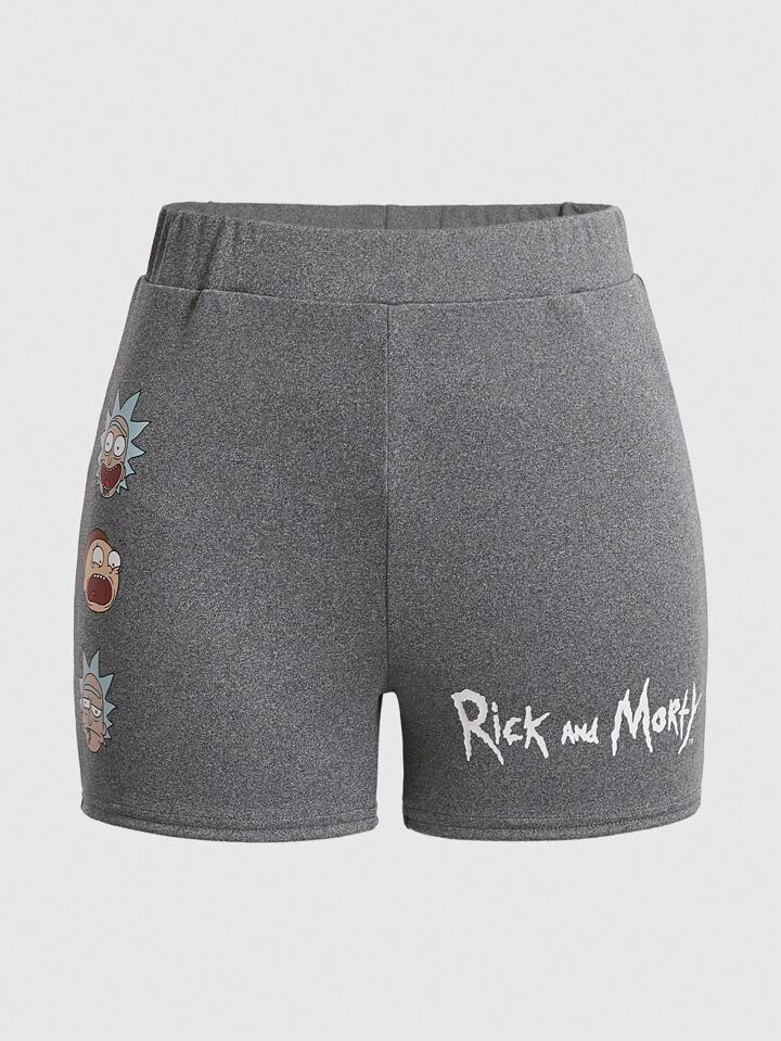Rick and Morty | ROMWE Letter & Cartoon Graphic Biker Shorts