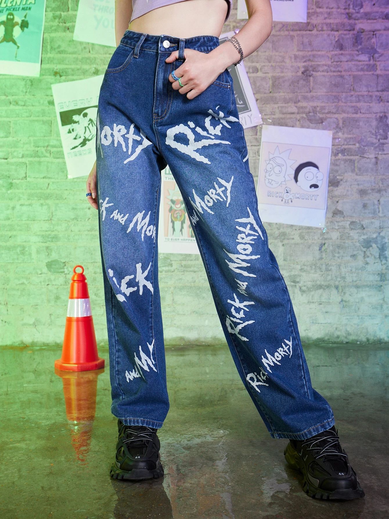 Rick and Morty | ROMWE Letter Print Washed Jeans