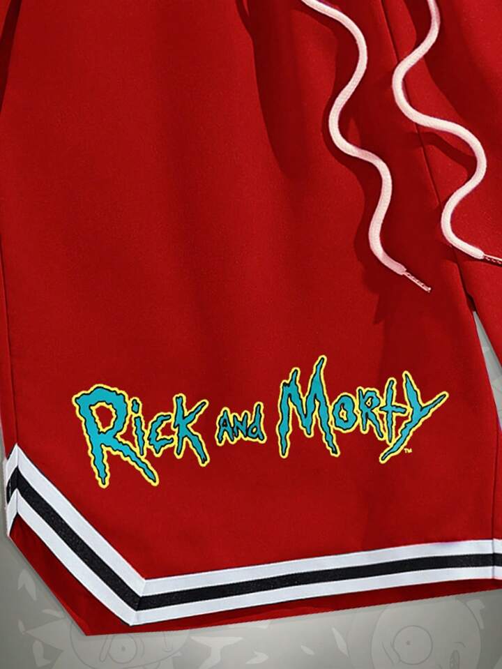 Rick and Morty | ROMWE Men Cartoon & Letter Graphic Drawstring Waist Shorts, School