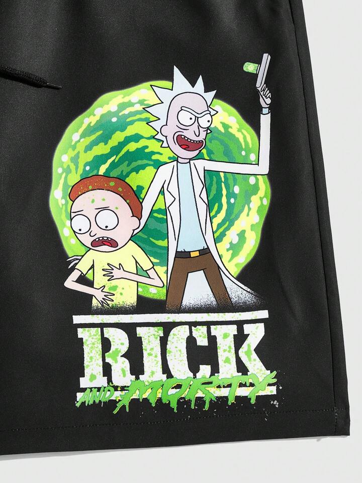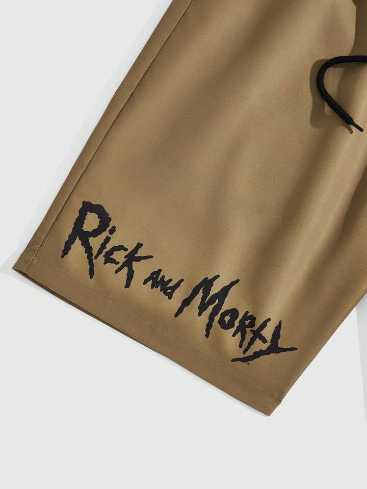 Rick and Morty | ROMWE Men Casual Cartoon Character And Letter Printed Two Tone Drawstring Waist Shorts For Summer