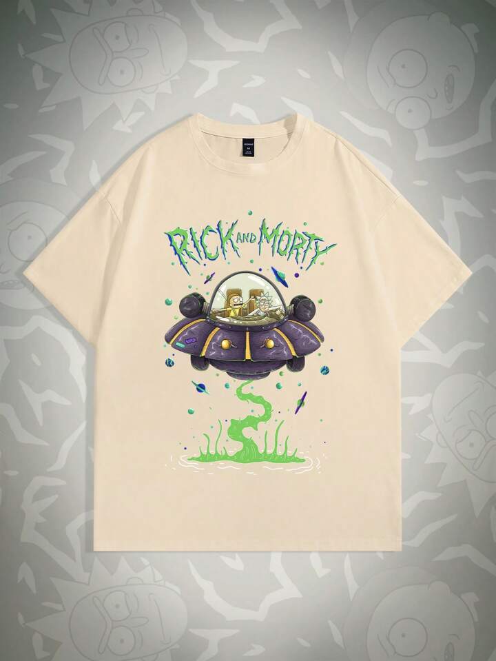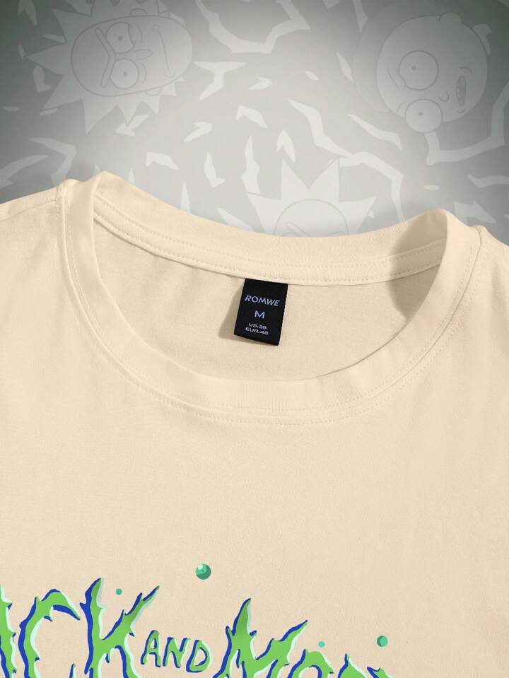Rick and Morty | ROMWE Men High Street Vintage Round Neck T-Shirt Suitable For Casual Daily Wear In Spring And Summer
