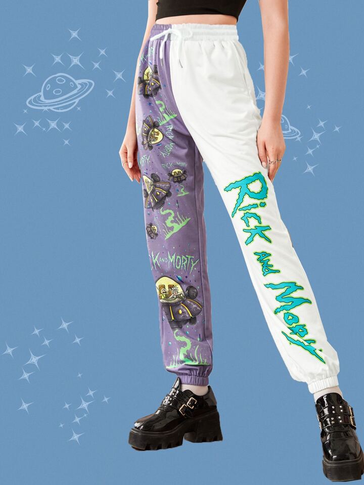 Rick and Morty | ROMWE Two Tone Cartoon Graphic Sweatpants