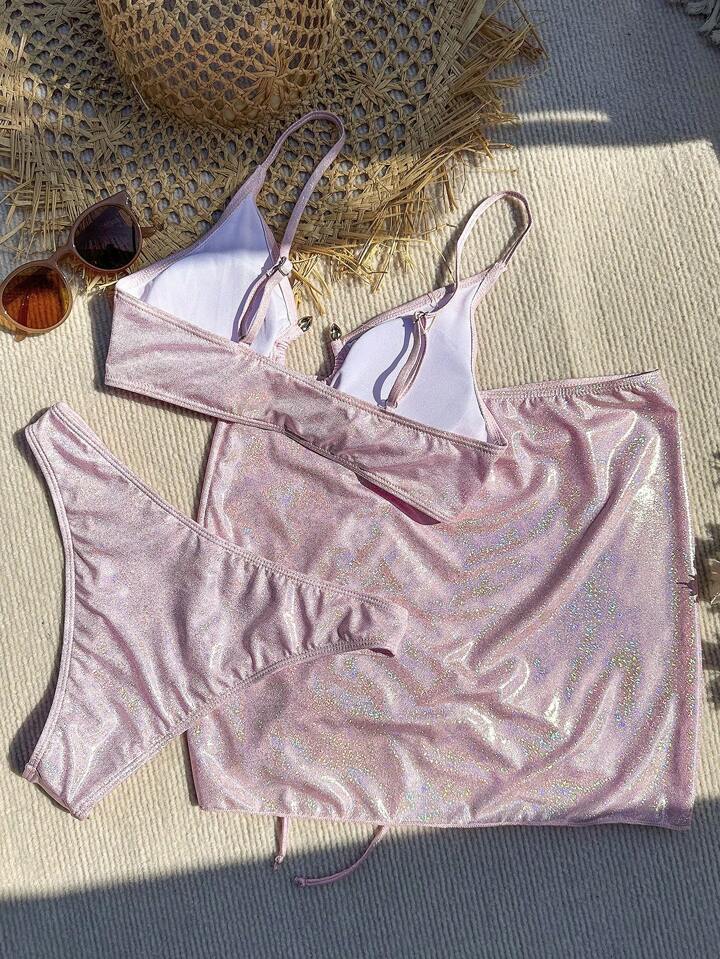 Ring Linked Bikini Set For Summer With Beach Skirt