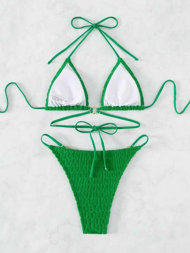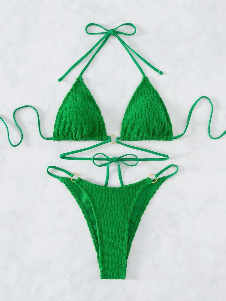 Ring Linked Halter Triangle Summer Beach Bikini Set
