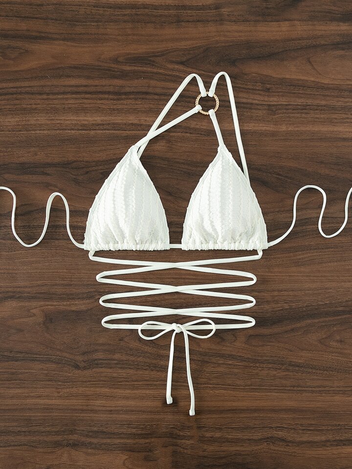 Ring Linked Lace Up Waist Halter Triangle Bikini Top