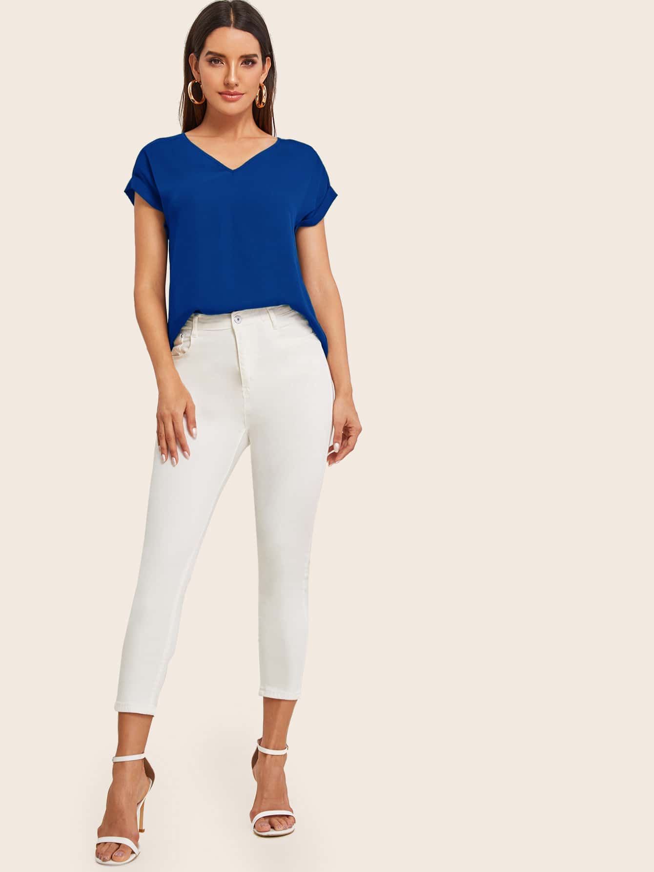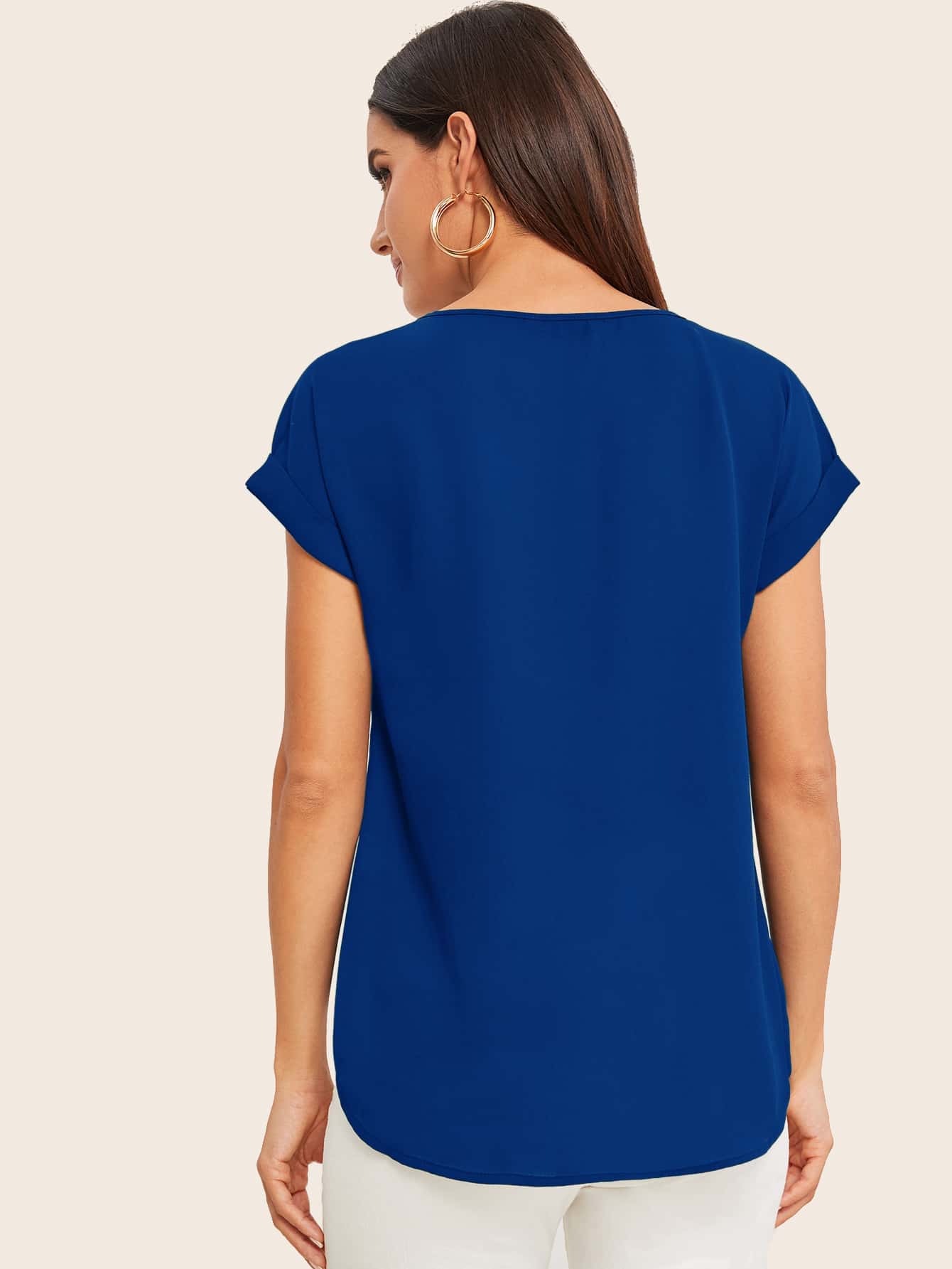 Roll Up Sleeve High Low Hem Top