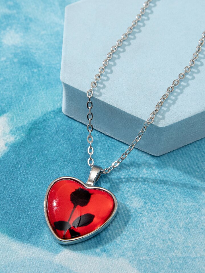 Rose Pattern Heart Pendant Necklace