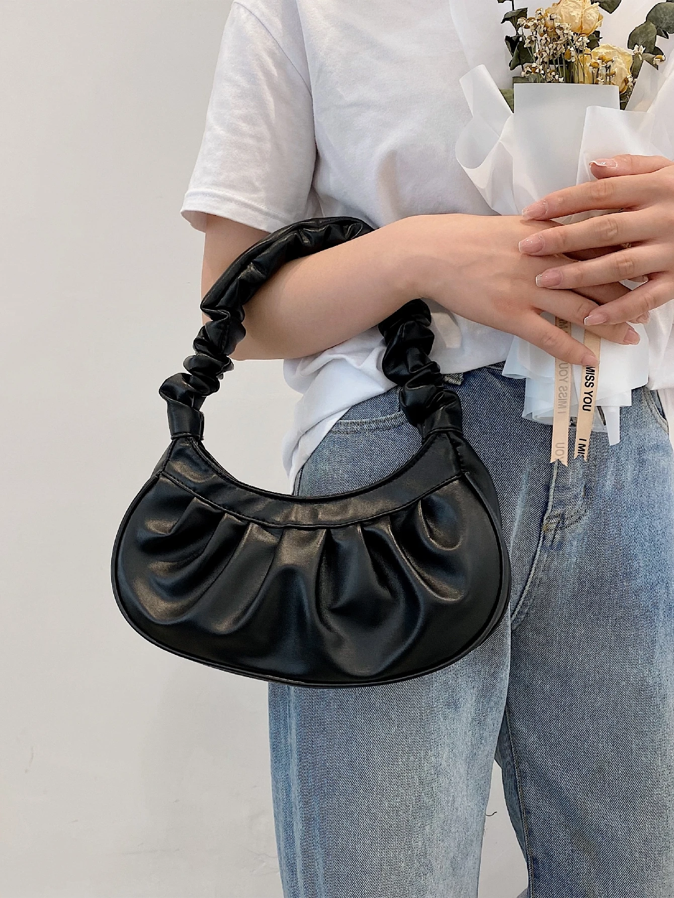 Ruched Design Shoulder Bag