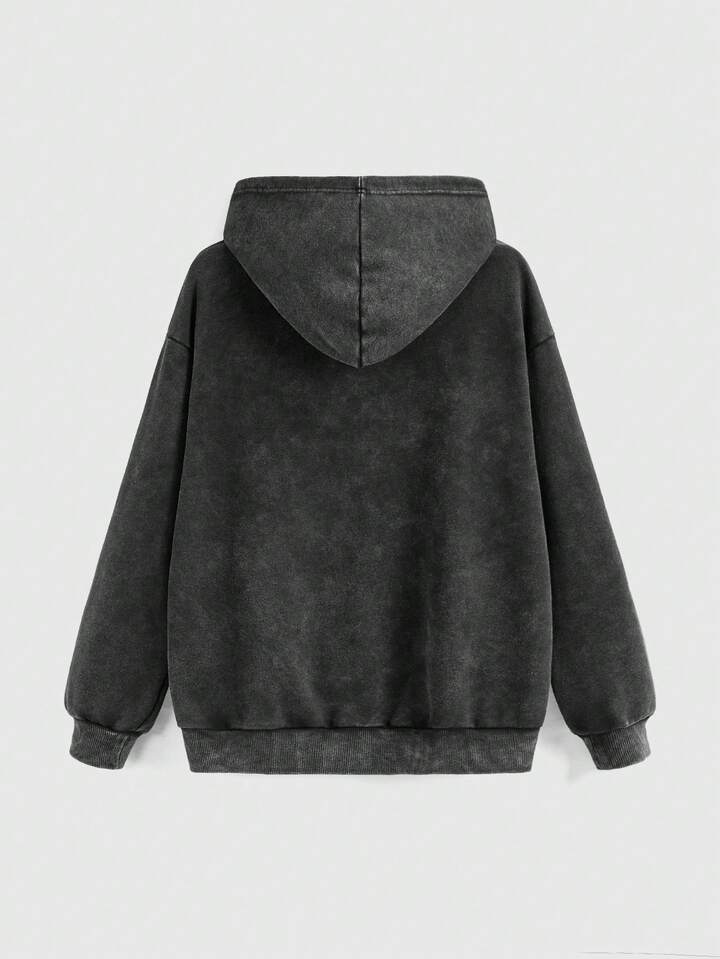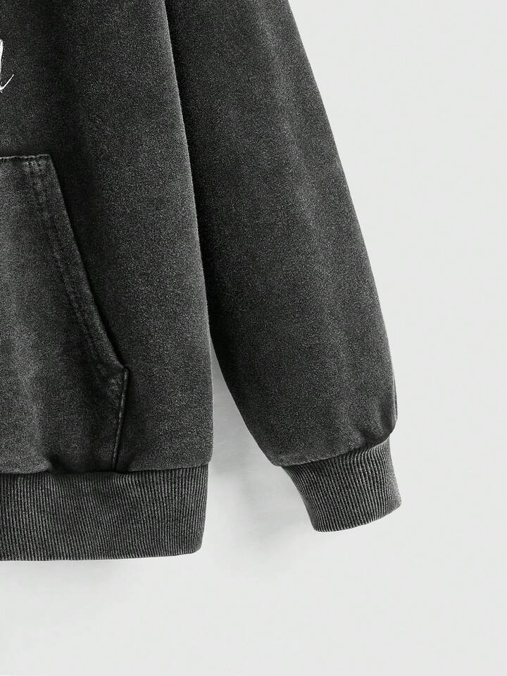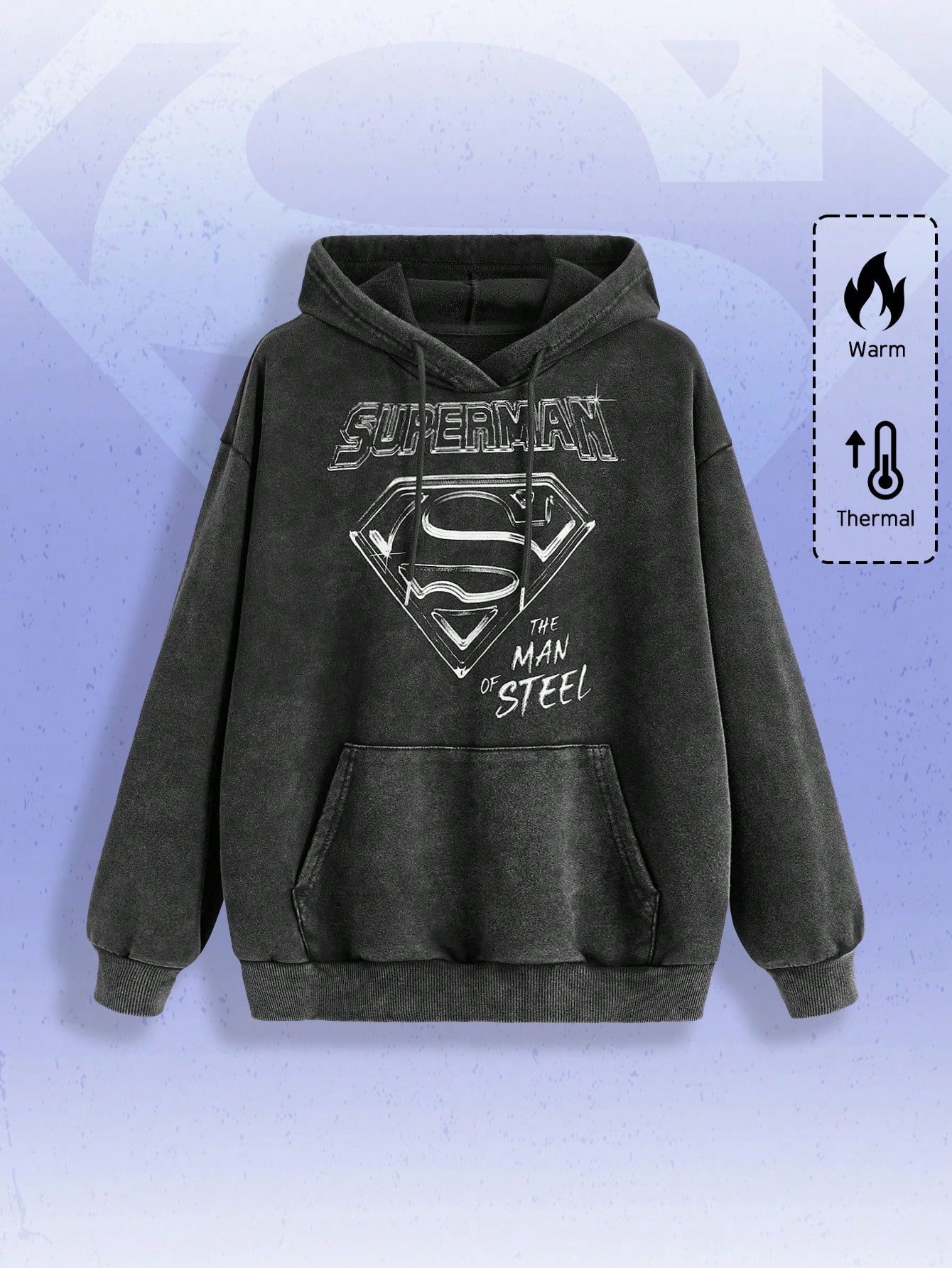 SUPERMAN X ROMWE Logo And Letter Graphic Distressed Texture Drawstring Hooded Sweatshirt,Long Sleeve Tops