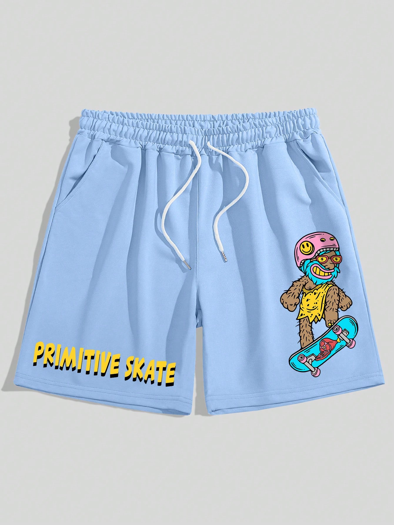 Sainen.image Guys Cartoon & Letter Graphic Drawstring Waist Shorts