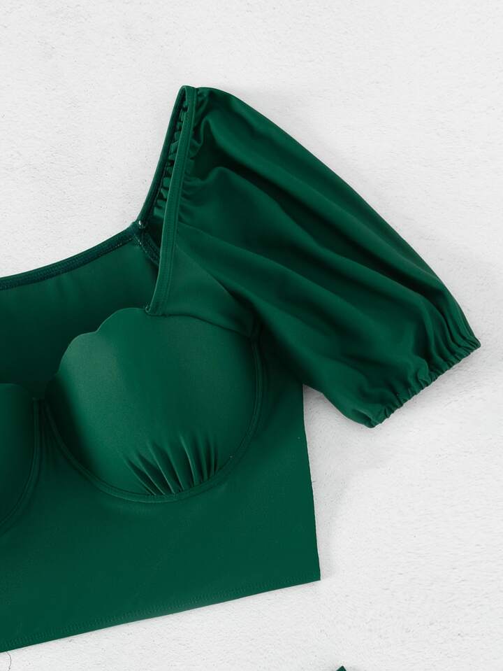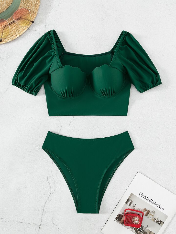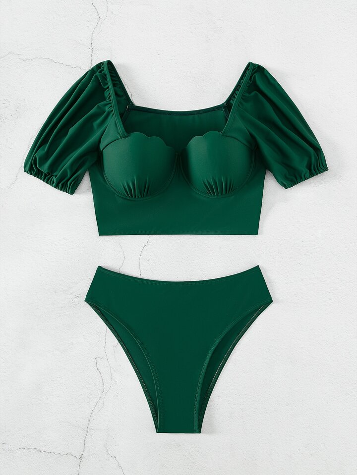 Scallop Trim Push Up Bikini Set Summer Beach