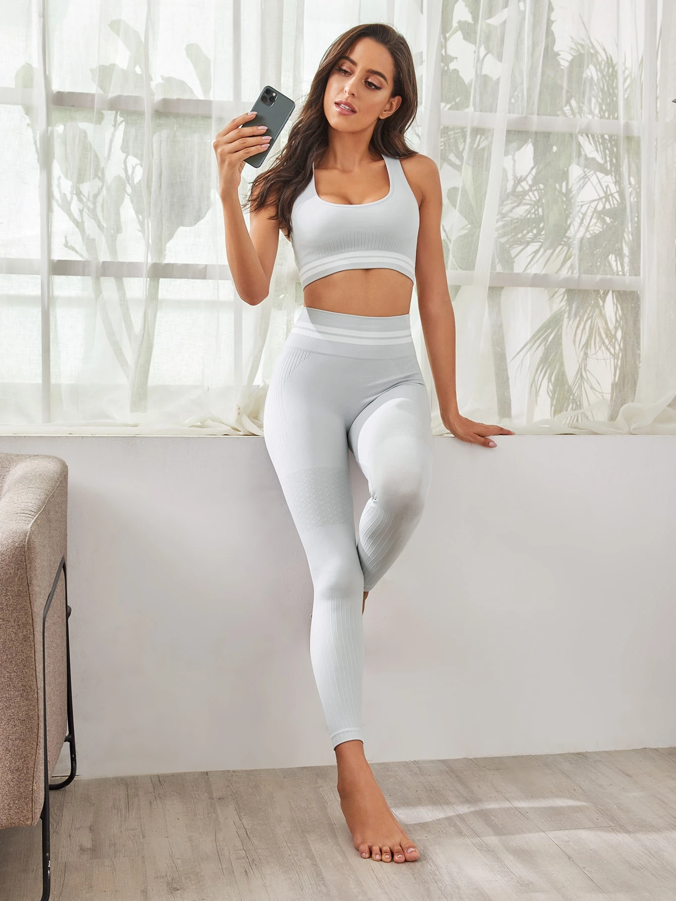 Scoop Neck Tank Top With Leggings Sports Set