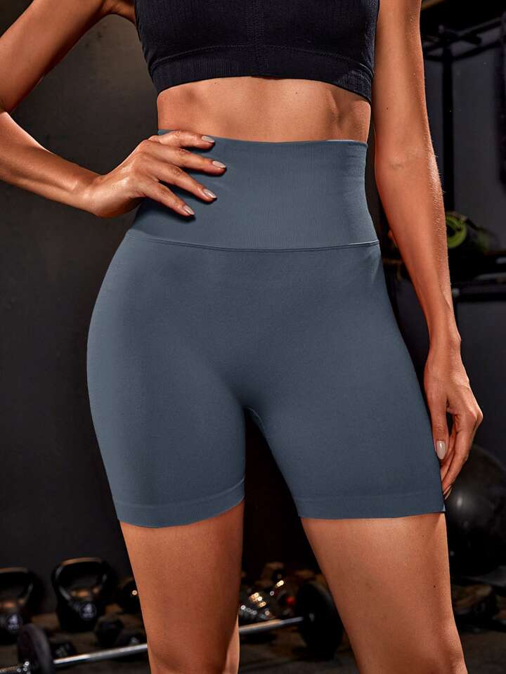 Seamless Wide Waistband Scrunch Butt Sports Shorts Blue ShortsWomen Sweat Short, Gym Short, Biker Short