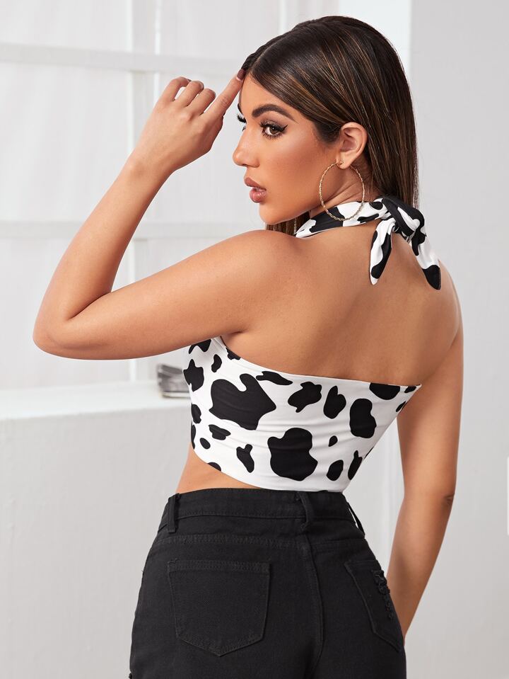 Self Tie Backless Cow Print Halter Top