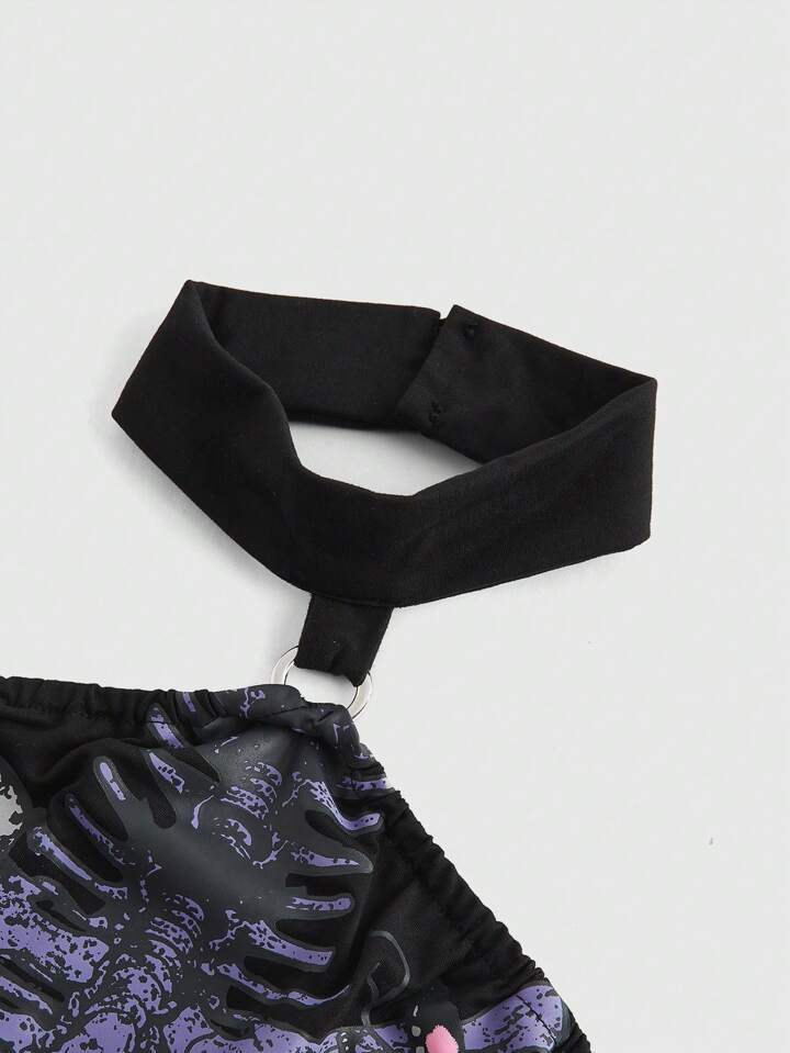 Sexy Gothic Choker Necklace With Round Ring, Cross, Skull & Snake Print Camisole For Plus Size Women