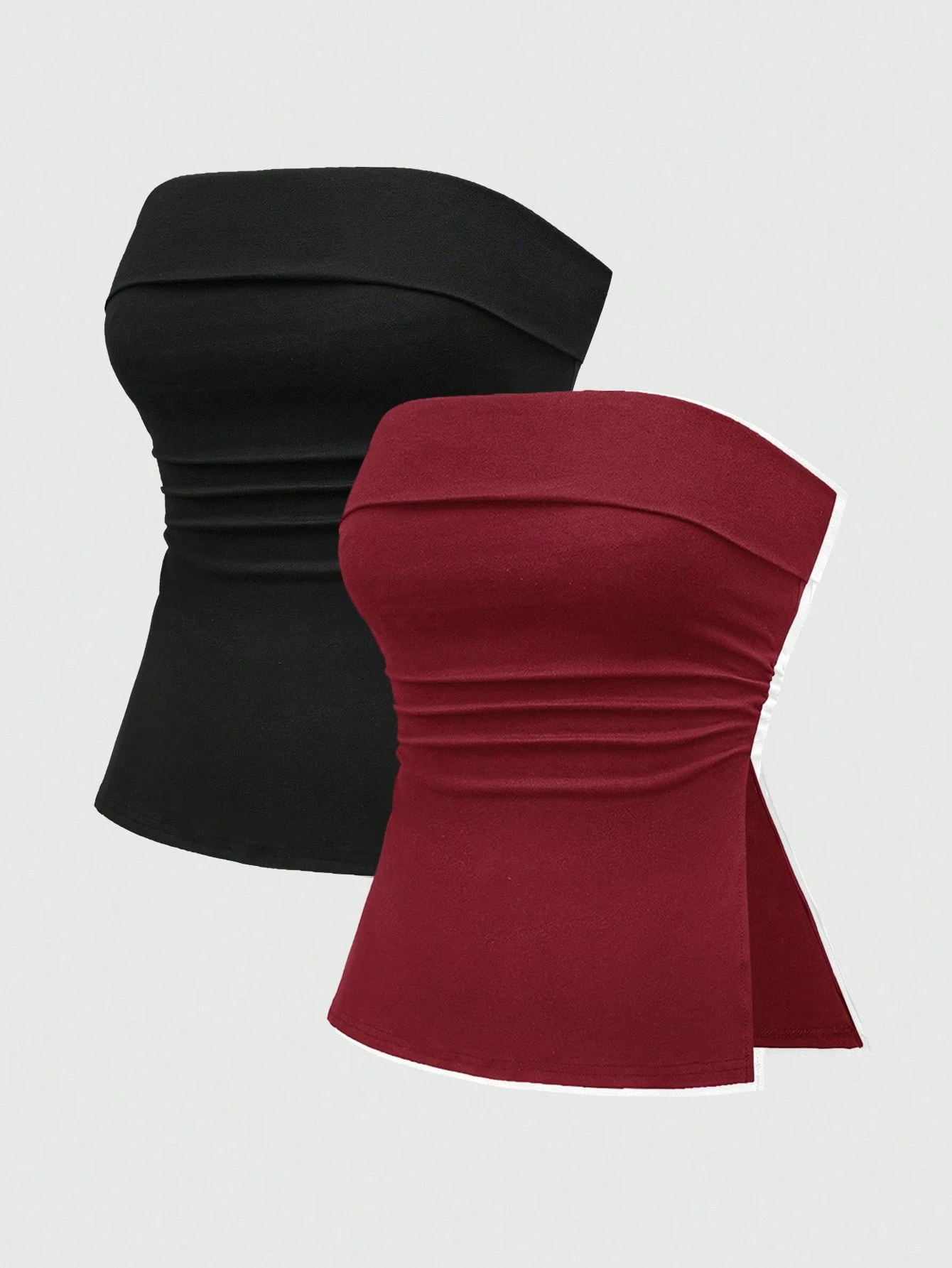 Grunge Punk Sexy Multi-Piece Black & White Solid Color Split Hem Women Tops