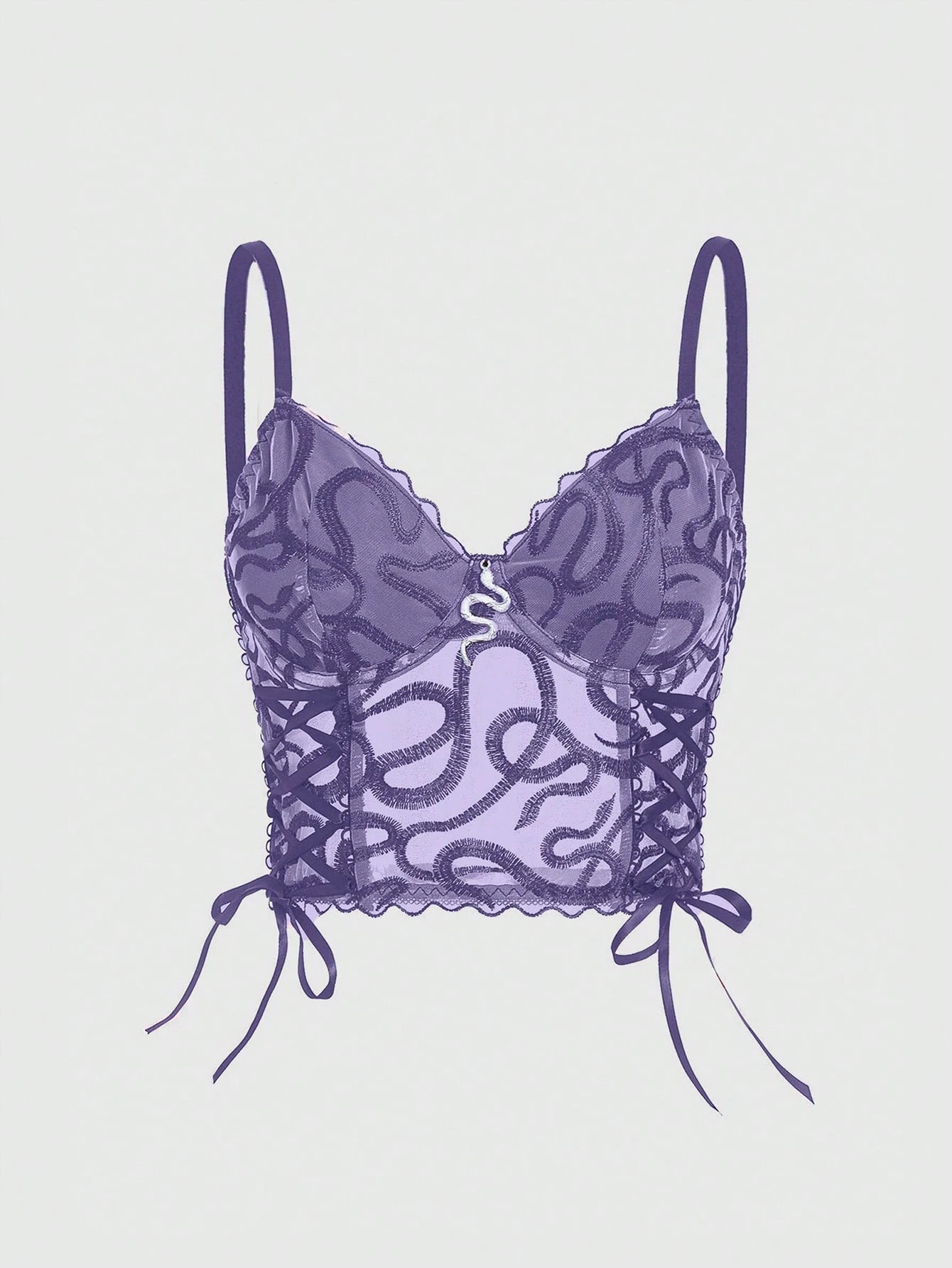 Goth Sexy Snake Embroidered Lace Up Transparent Hollow Out Lace Camisole For Women