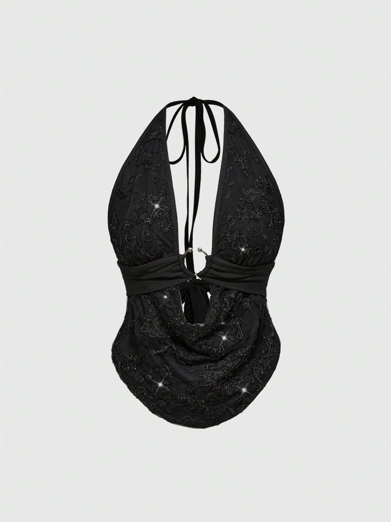 Fairycore Sexy V Neck Open Back Halter Top For Women, Glittery Retro Vacation Style