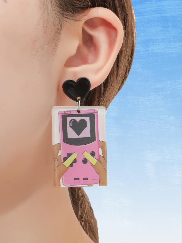 Shani Aisha Anime Heart Print Geo Drop Earrings