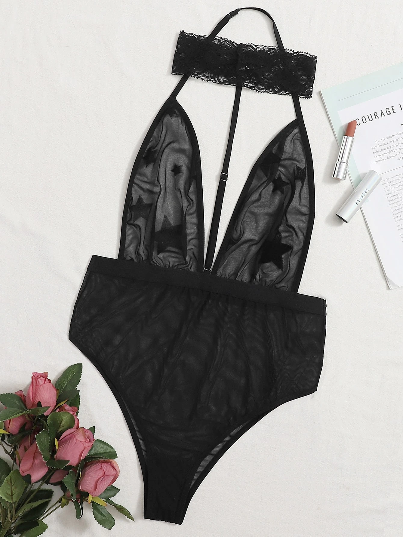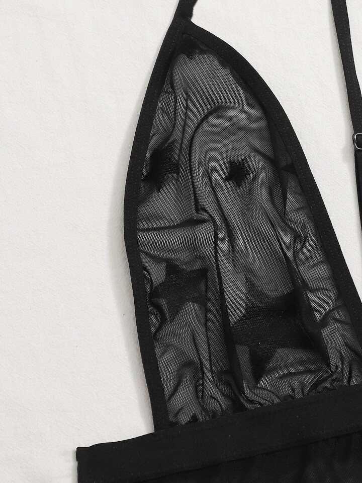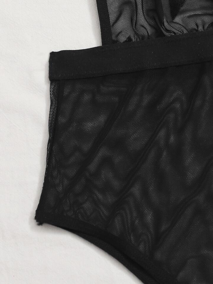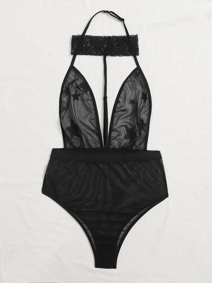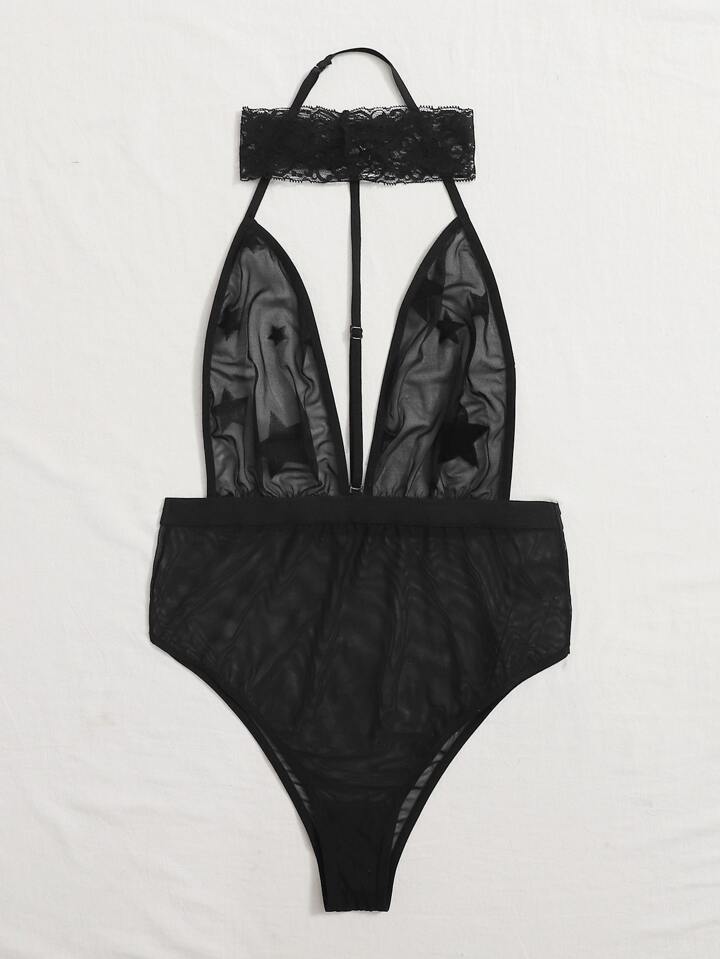 Sheer Mesh Star Choker Teddy Bodysuit