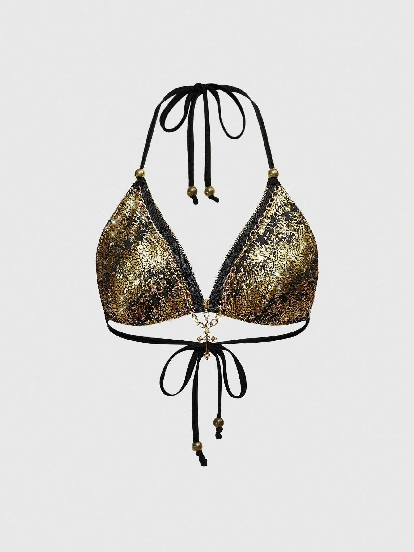 J-Fashion Shibuya Y2K Halter Triangle Summer Fashion Metal Chain Decor Women Top