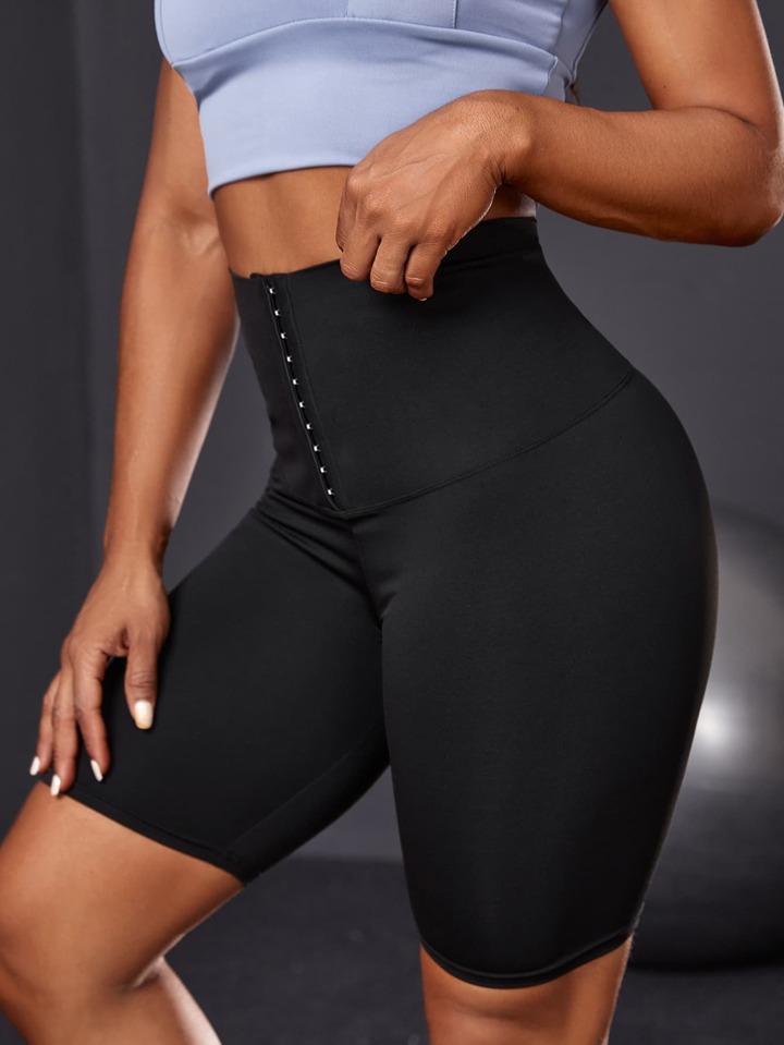 Short Workout Leggings Shaping High Stretch Tummy Control Gym Tights With Hook & Eye Waist