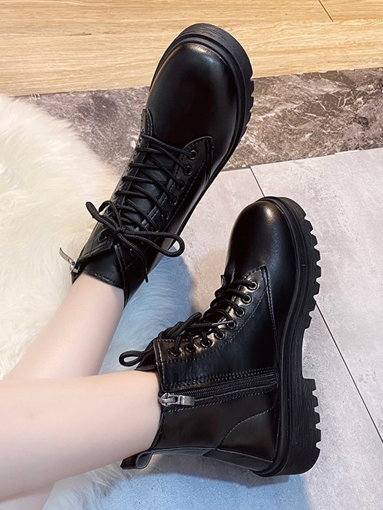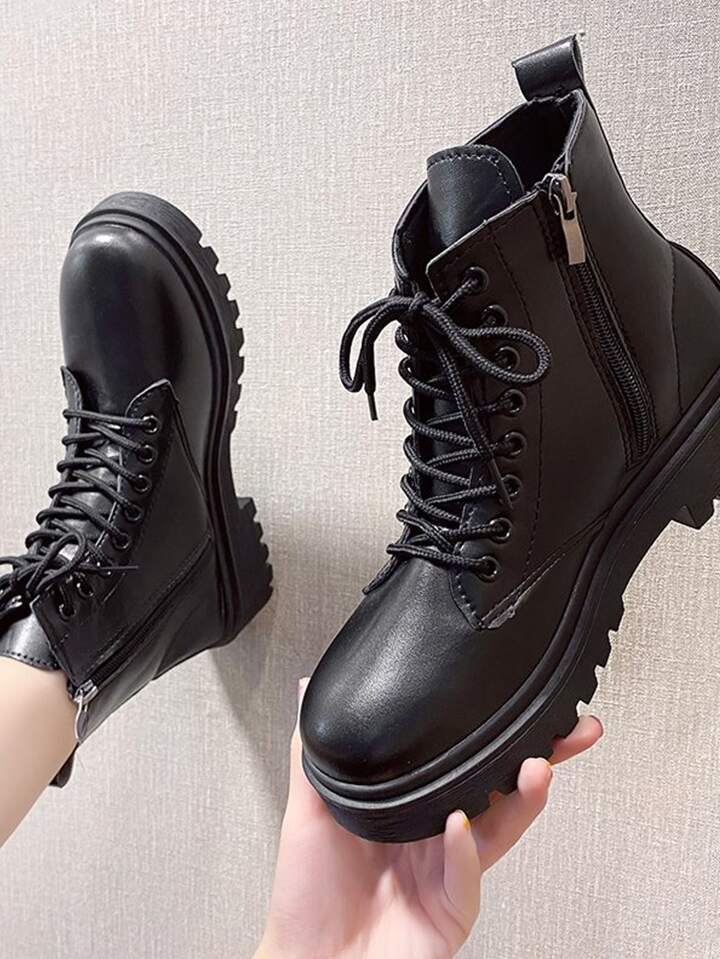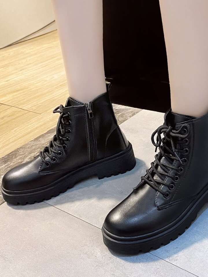 Side Zip Lace Up Front Combat Boots