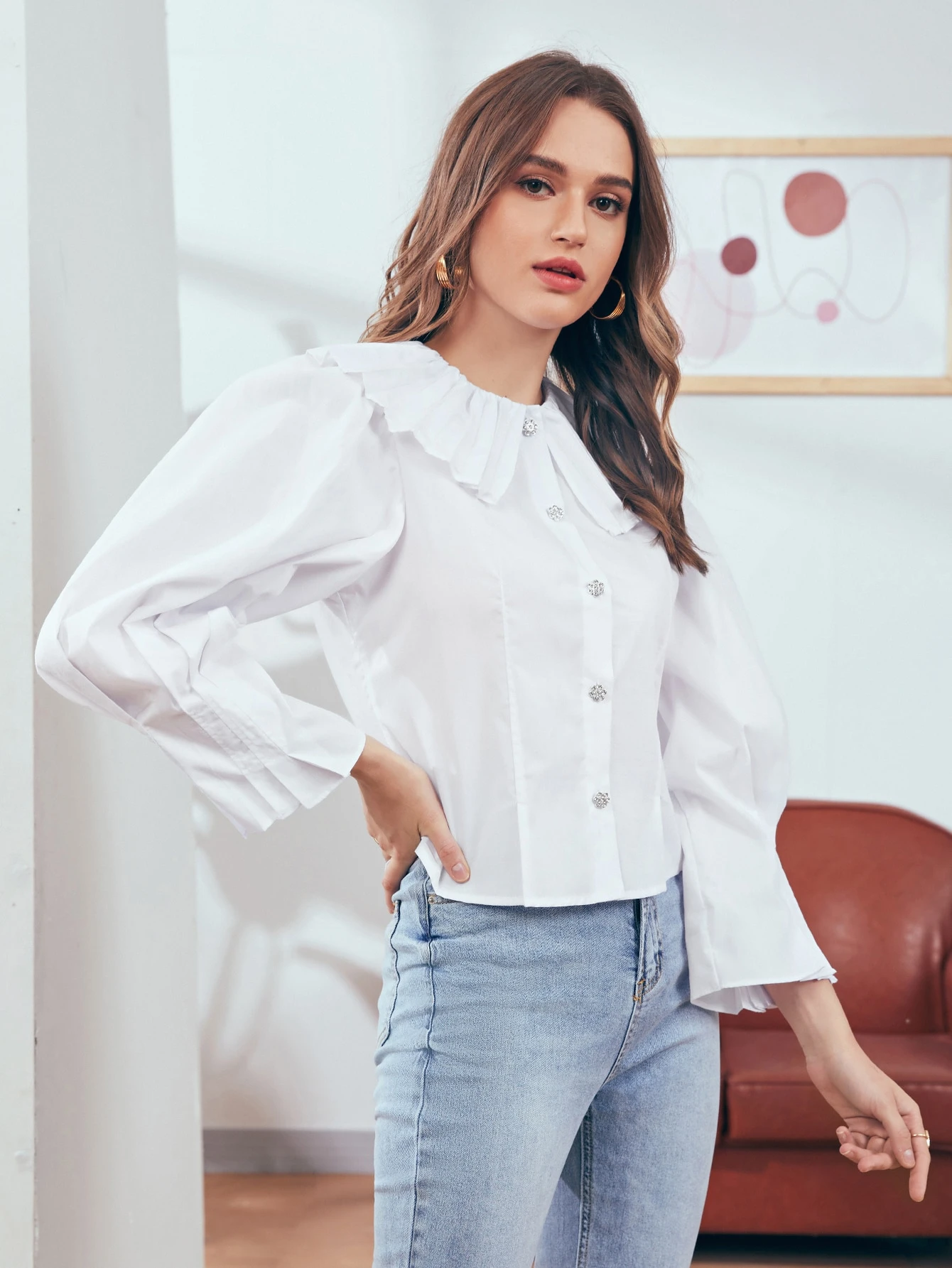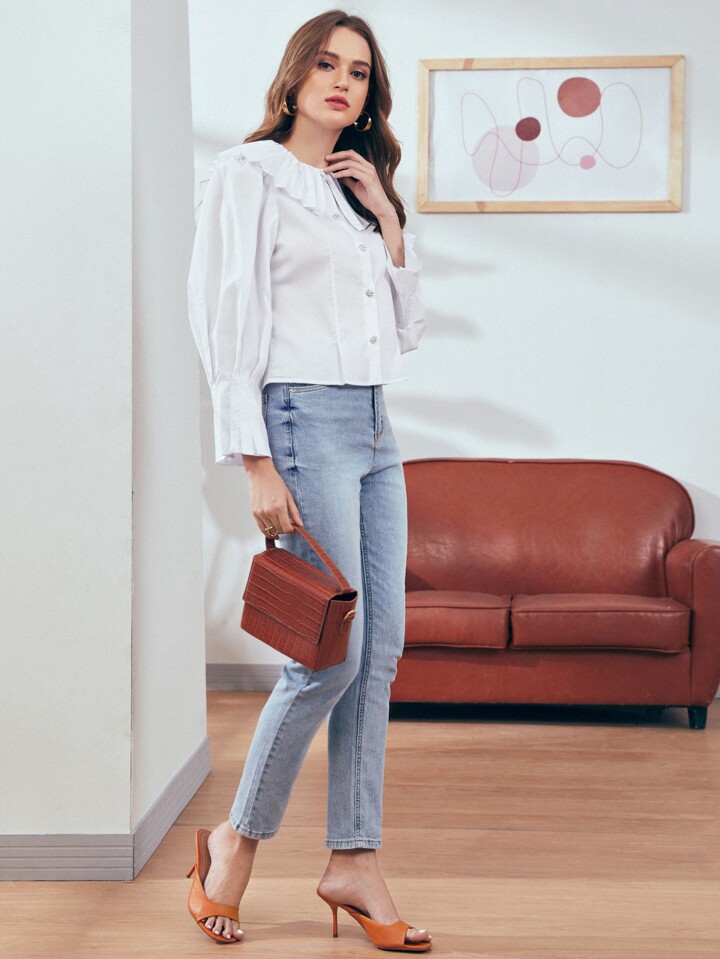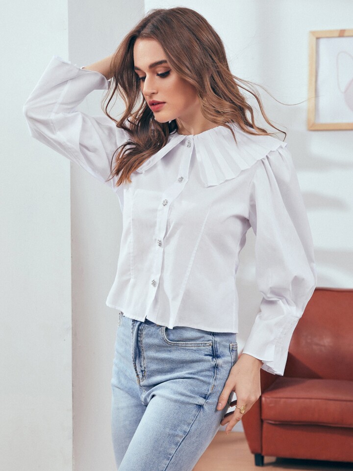 Single Breasted Peter Pan Collar Puff Sleeve Blouse
