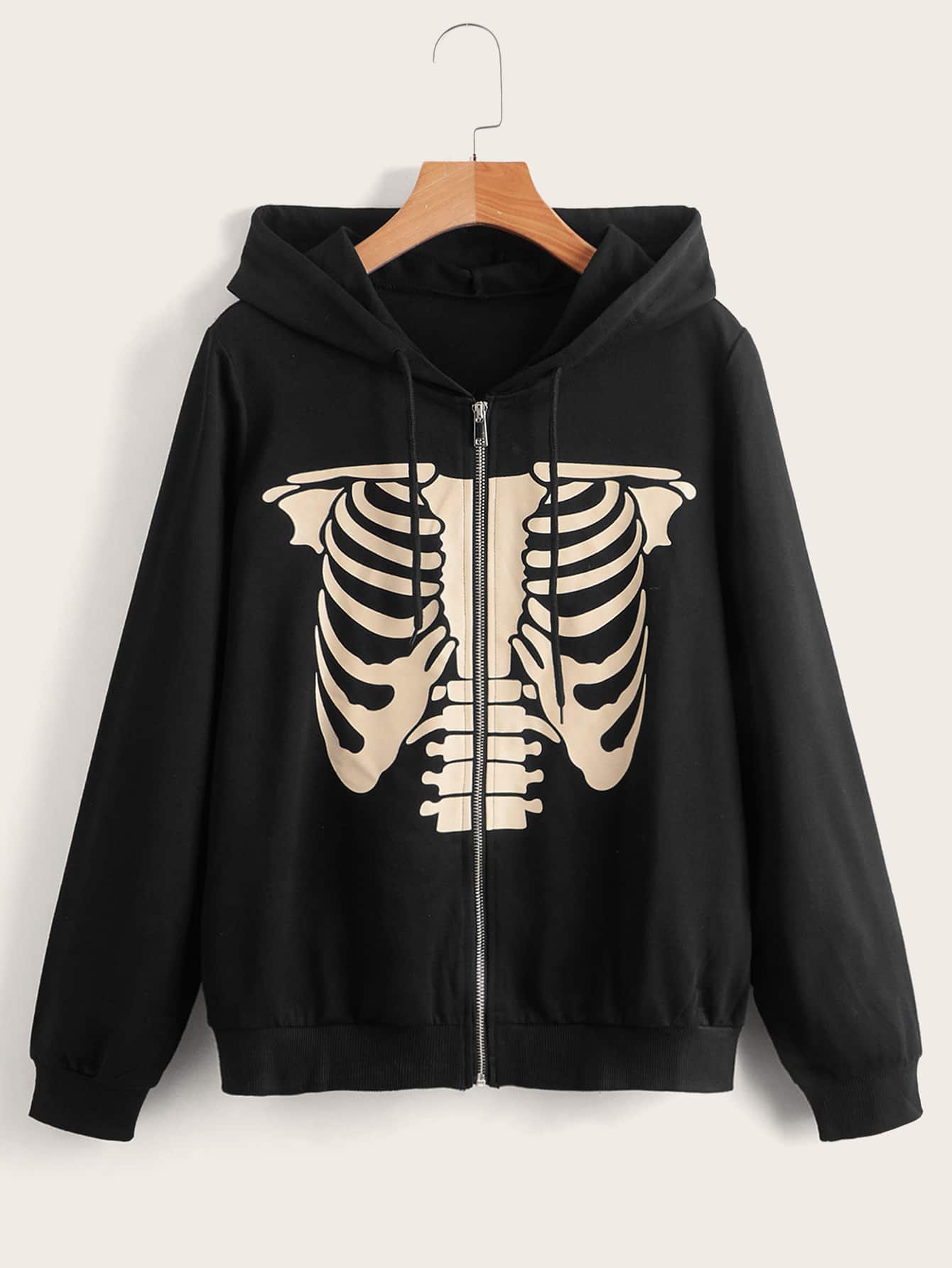 Skeleton Graphic Drawstring Zip Up Hoodie