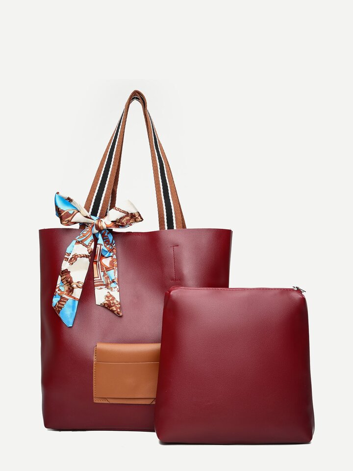 Skinny Scarf Tote Bag With Inner Pouch