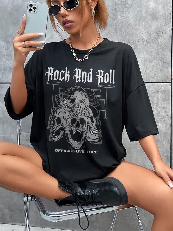 Skull & Letter Graphic Drop Shoulder Tee