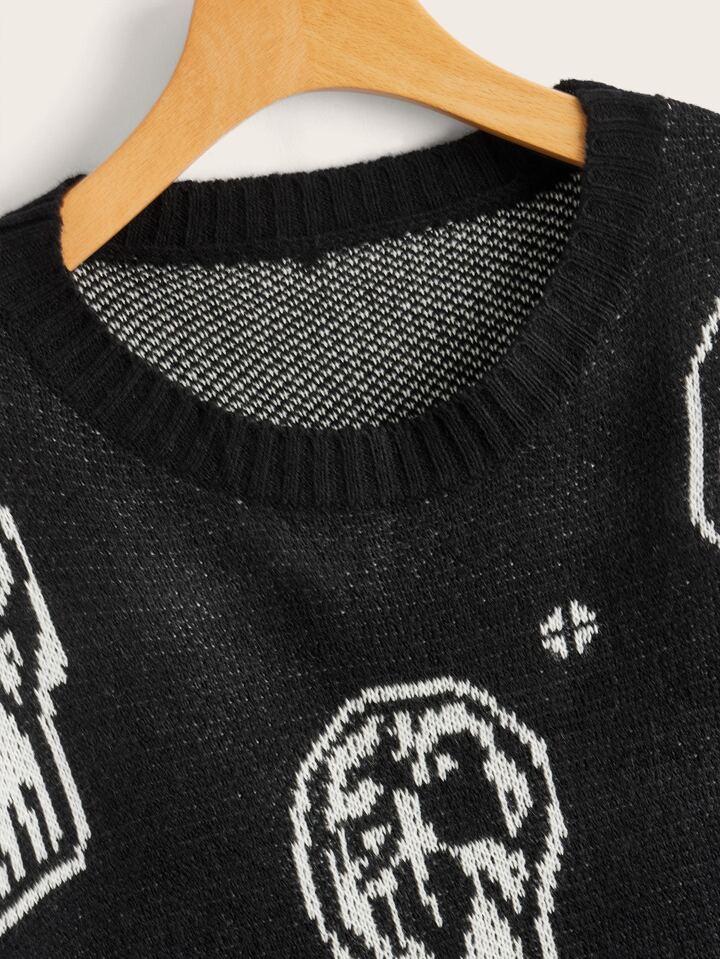 Skull Pattern Drop Shoulder Sweater
