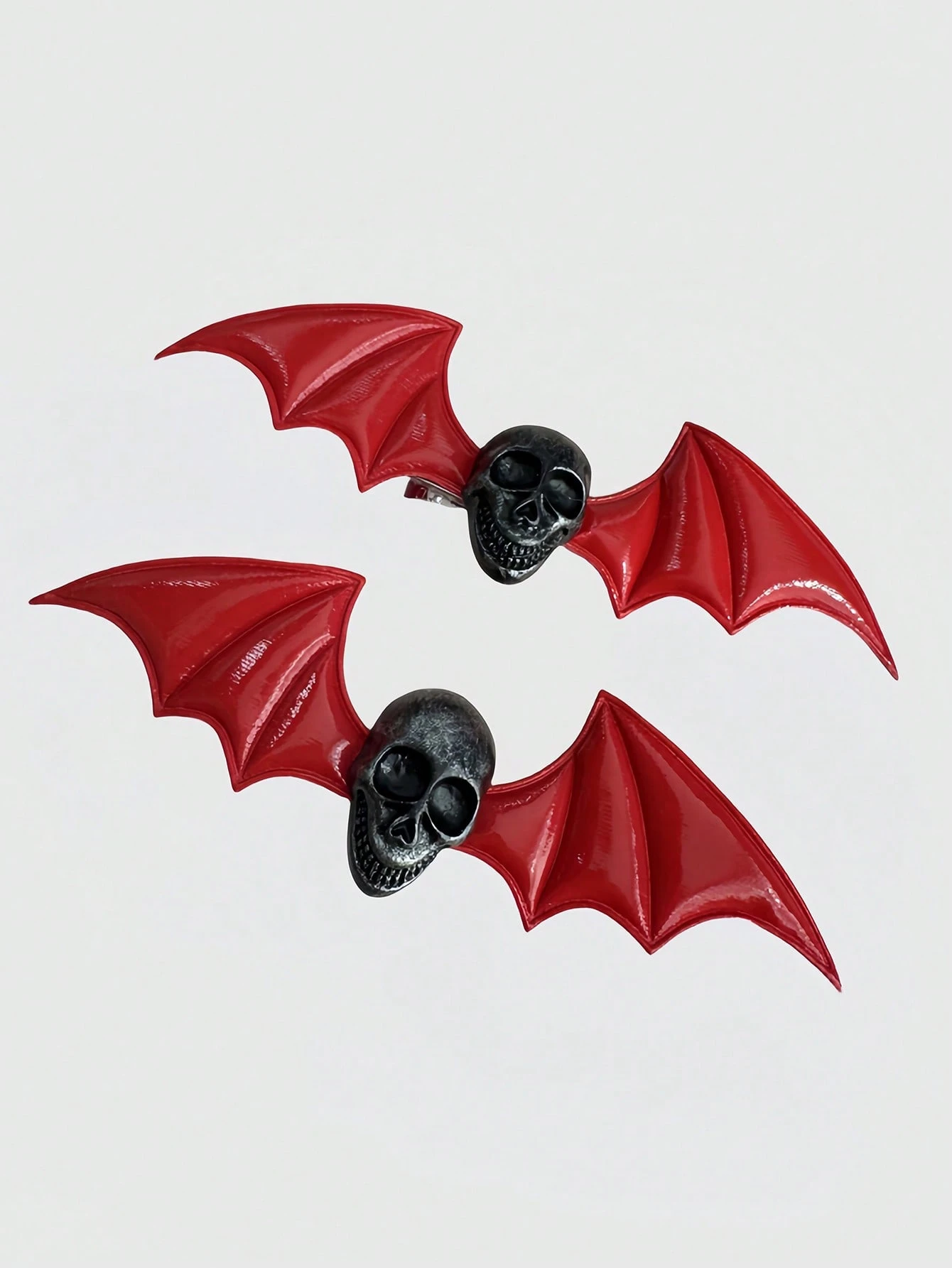 Skull & Wing Hair Clip, Goth Lolita Punk Metal Decor Hair Accessory