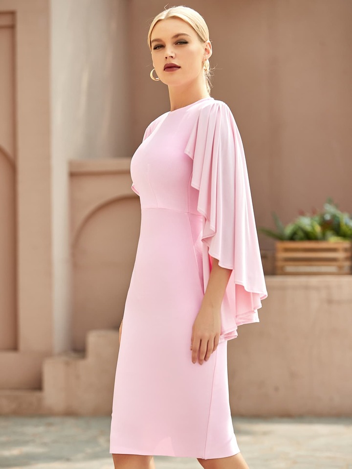 Slit Sleeve Slit Back Bodycon Dress