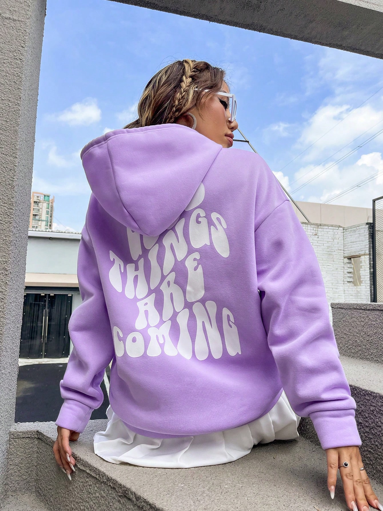 Slogan Graphic Drop Shoulder Drawstring Thermal Lined Hoodie Graduation,Back To School Outfits,Graduation,Teacher Outfits For Women,Back To School Pullover Fall Outfit