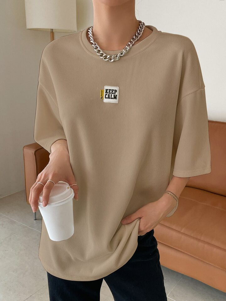 Slogan Patched Drop Shoulder Tee KEEP CALM Oversized T-Shirt