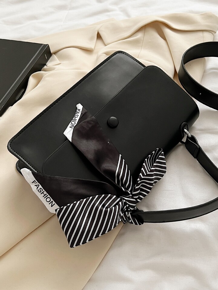 Small Flap Square Bag Button & Skinny Scarf Decor PU